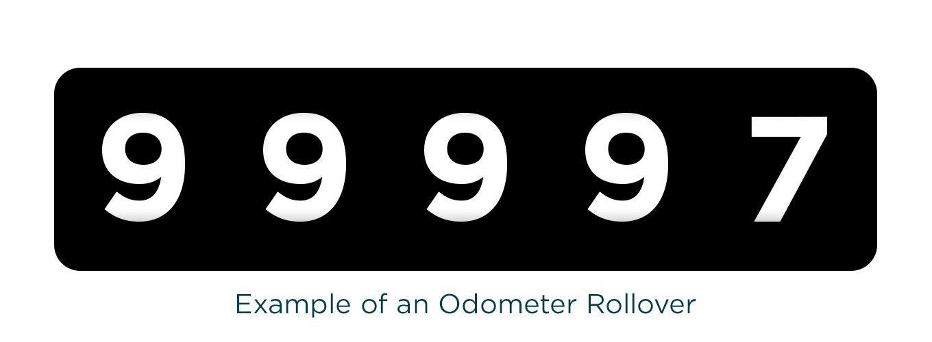 Five-digit odometers max out at 99,999 miles. Mileage that exceeds 99,999 will roll over and start over at 1. In these circumstances, mileage would exceed its mechanical limits. Only older vehicles have a 5-digit odometer, though some motorcycles do as well. Since newer vehicles began reaching and surpassing 100,000 miles, the 5-digit odometer became inadequate, which led to the transition to 6-digit (and digital) odometers.