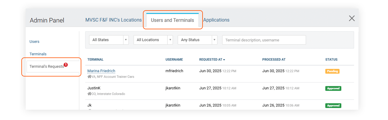 For Admins: Approving Terminal Requests