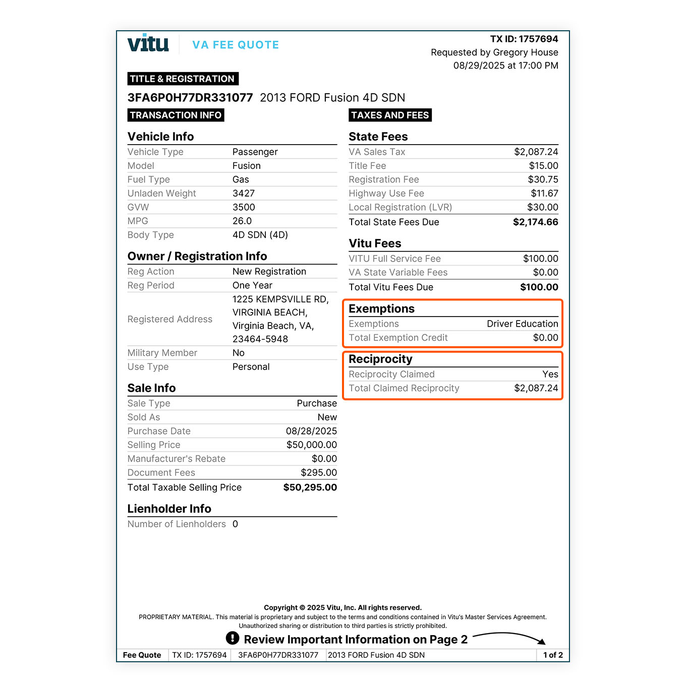 Take a peek at our enhanced Fee Quote below, now including the Reciprocity and Exemption fields.