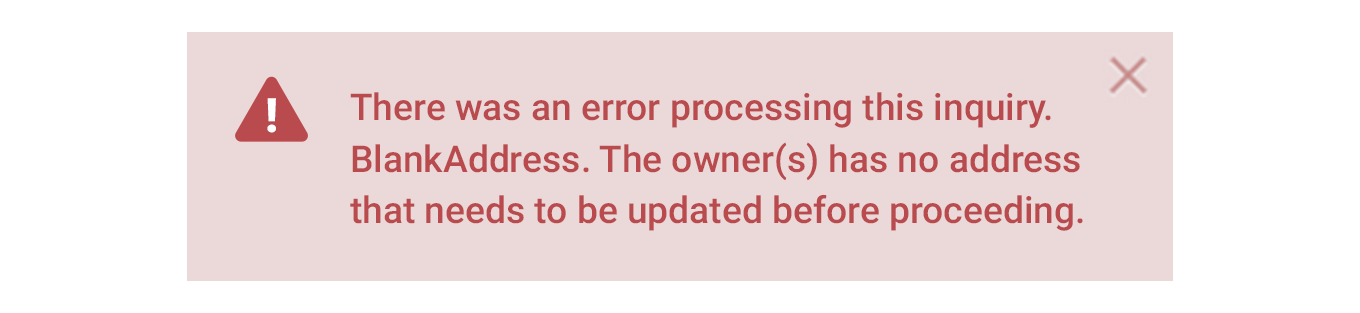 This error message can be confusing when the address was already manually entered in the transaction, making the correction for the error unclear. To resolve the error, simply enter the MD ID number that was created when the customer bought a vehicle in Maryland.