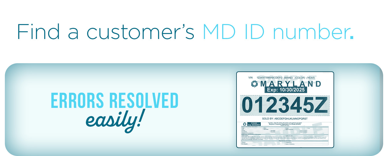 How do you find the MD ID number that the customer doesn’t even know they have? If the customer previously purchased a vehicle in Maryland that they still own, or are trading in, you can run an MVR on that VIN and the MVR will have the customer's MD ID number.