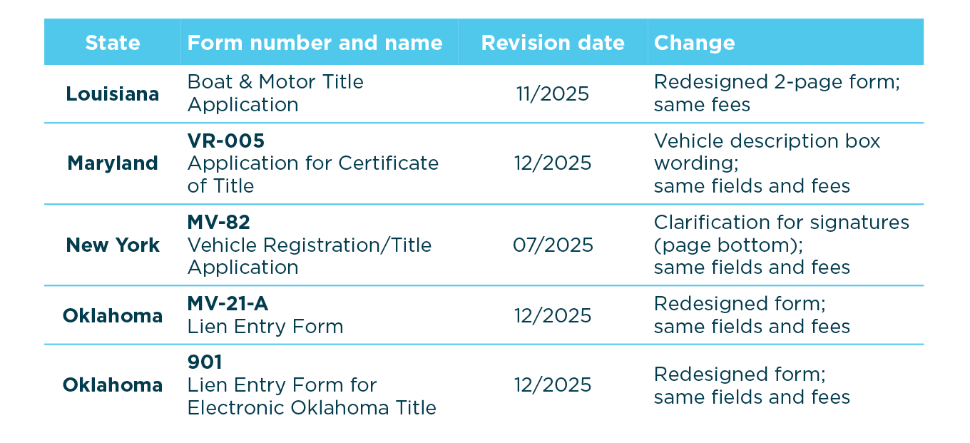New Hampshire increased title and registration fees effective January 1, 2026.