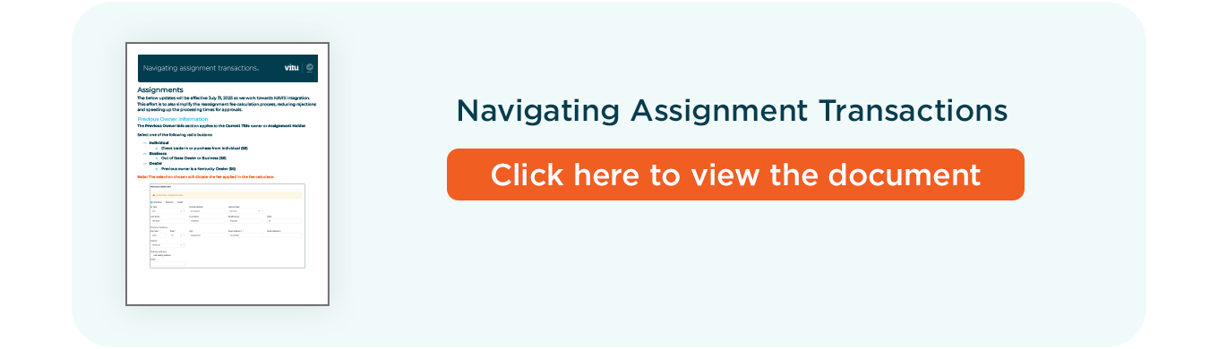 The initial phase of integration with the KAVIS (Kentucky Automated Vehicle Information System) system has been implemented for Dealer Assignment and Transfer transactions.