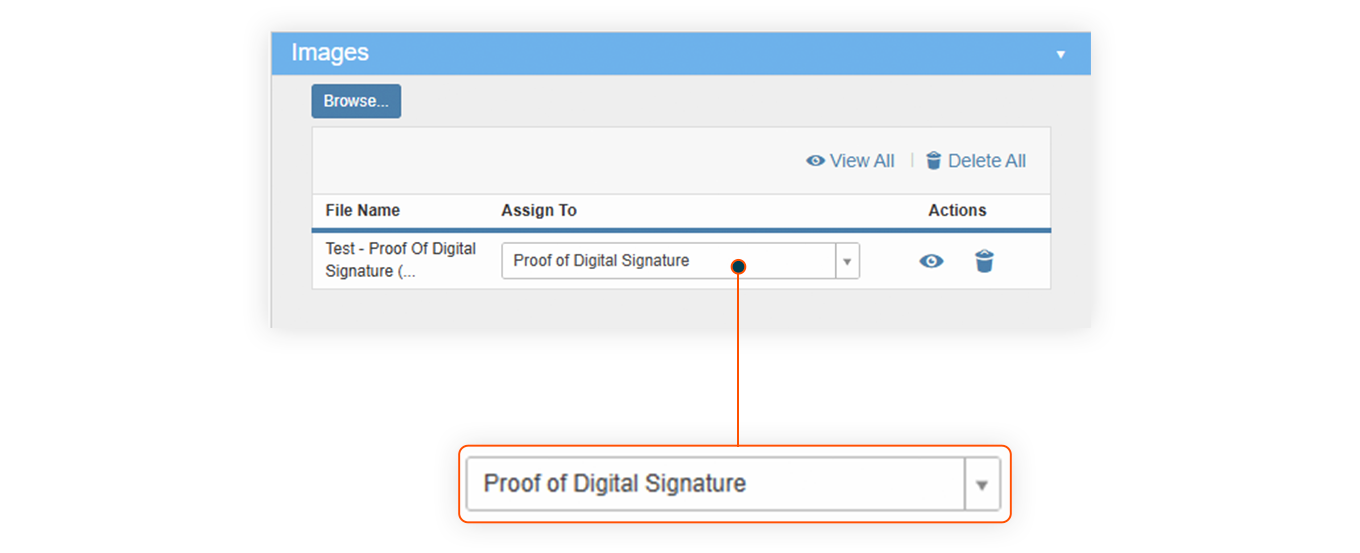 RTS does not currently support a native digital signature solution. However, users can upload a digitally signed document in RTS. If the User wishes to upload a digitally signed document, they may do so, and include an audit document that will be tagged in the images section as "Proof of Digital Signature."