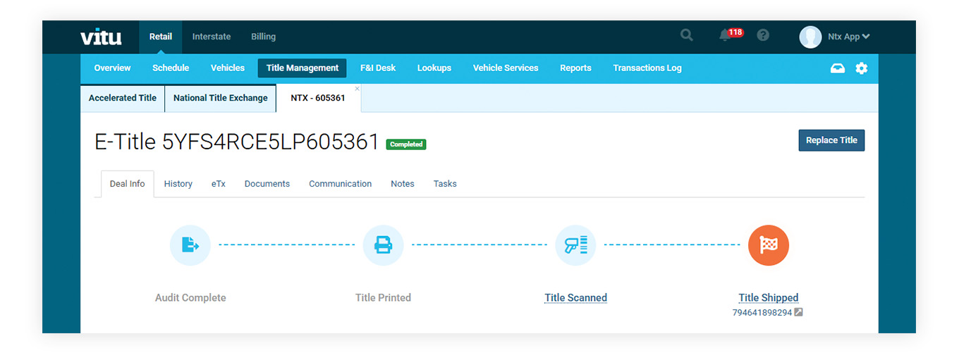 With the new Title Tracker feature, the email you receive from the NTX title processing department is now automated. You will still receive the same information — however, it will now come directly from NTXprocessing@vitu.com and the layout will look a little different.