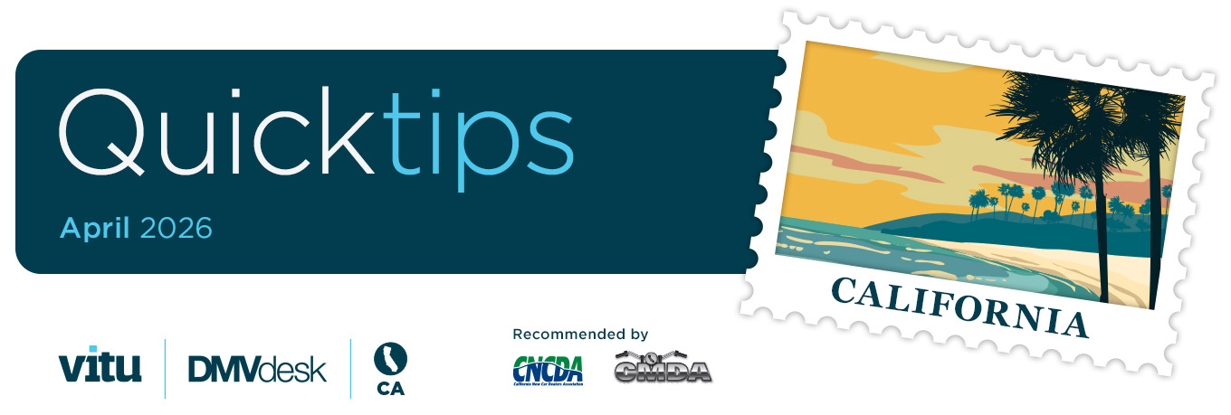 Confidence, accuracy and the ability to handle every scenario means deals move faster. This Spring, we’re hitting the road to help you brush up on the often complex world of California title and registration. We’ll deliver best-in-class, in-person title and reg and on-site F&I training sessions tailored to meet your specific needs and designed to help your team perform at their very best every day.