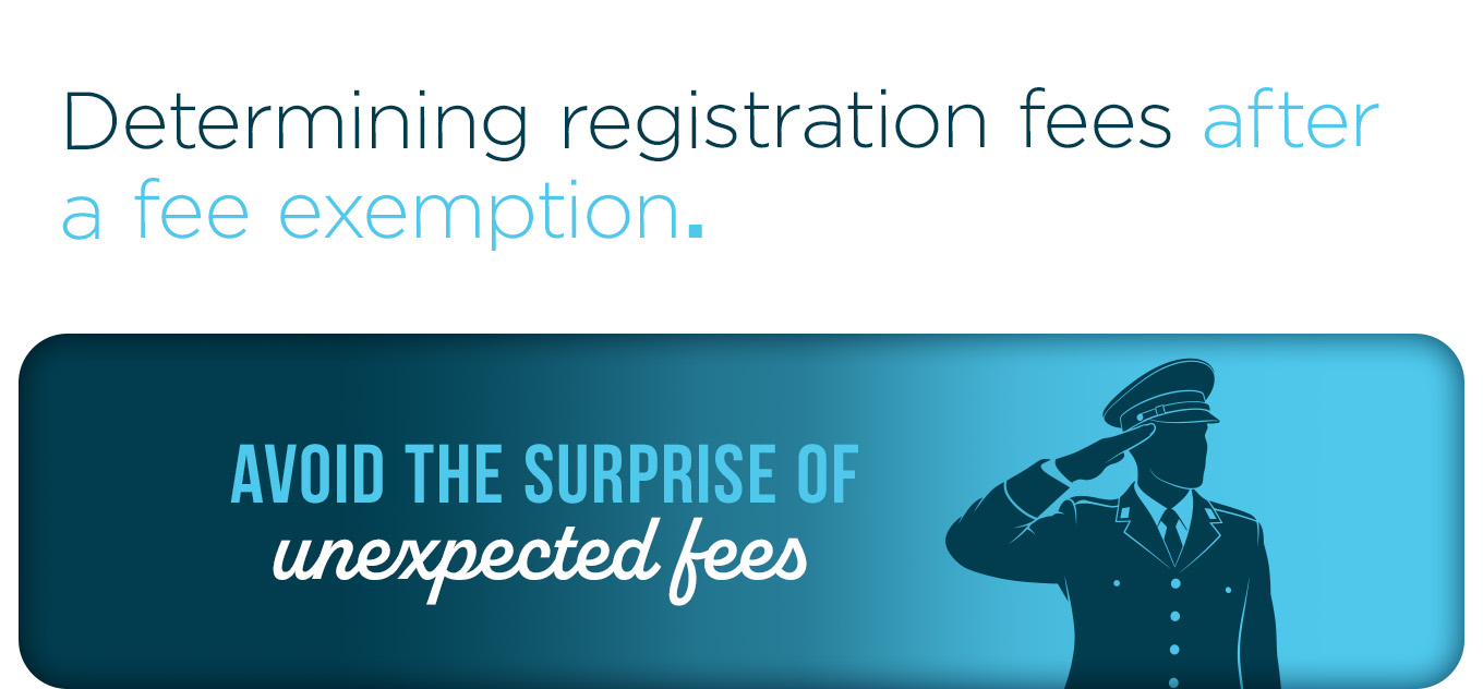 - Nonresident Military (NRM) — The registration period will not change, but the DMV will retroactively collect the Vehicle License Fee (VLF) that was exempted for the previous owner when transferring to a new buyer. You can run a Used Fee Calculator for a Used Transfer to determine the fees.