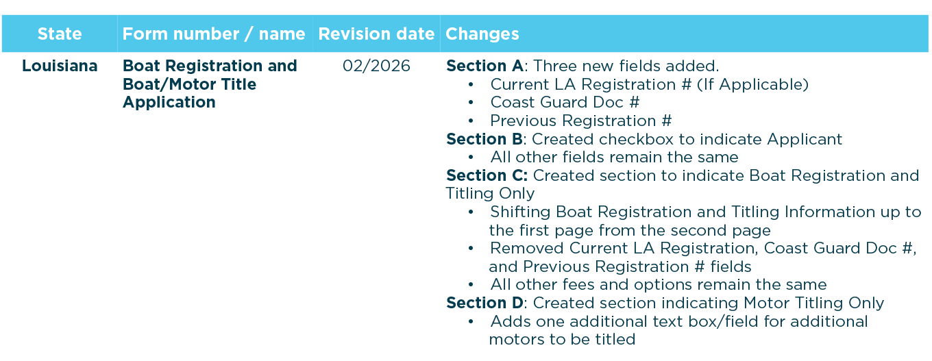 Below is a summary of the latest updated state title and registration forms.