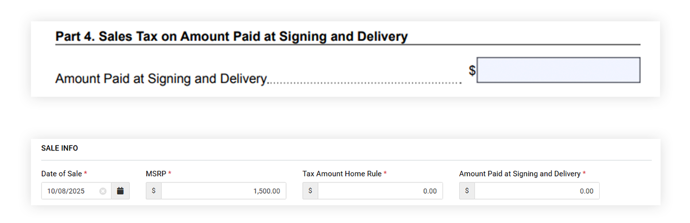 - The DR 0026 shows $0.00 as the amount paid at signing and delivery (see example below)