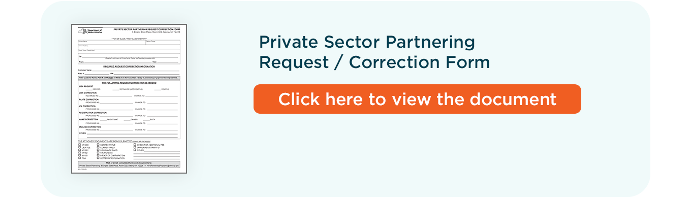 If the Partnering Unit receives paperwork for a vehicle that is being registered in a corporation's name, a photo ID for the person signing the MV-82 must be submitted. Also, the printed name and title of the person signing for the corporation is required (as stated on the back of the MV-82). If the state does not have the photo ID, signature and printed name, as well as the signer's title on the back of the MV-82, Partnering will reject the paperwork and you will be asked to submit replacement MV-82s. This requirement must be met, regardless of the print date of the MV-82 submitted.